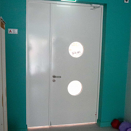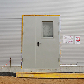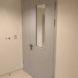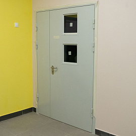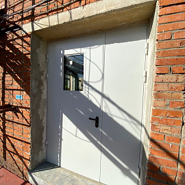Дверь двупольная металлическая противопожарная с остеклением изготавливается по индивидуальным размерам на нашем собственном производстве. Полотно и рама двери выполнена из металла 1,2 или 1,4 мм. Цвет двери может быть абсолютно любой по шкале RAL, используем порошковое напыление. Качественная упаковка обеспечит доставку в другой регион без рисков. Срок изготовления в среднем занимает 7 дней.