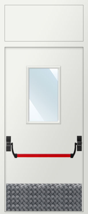 Дверь противопожарная металлическая остекленная EIS60 300х600 с фрамугой, антипаникой и накладкой из алюминия