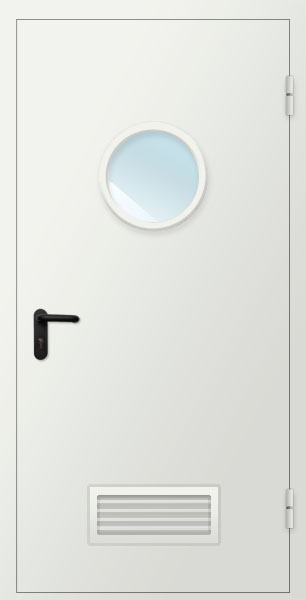 Дверь техническая ДМ-1 с остеклением D300мм и вентиляционной решеткой